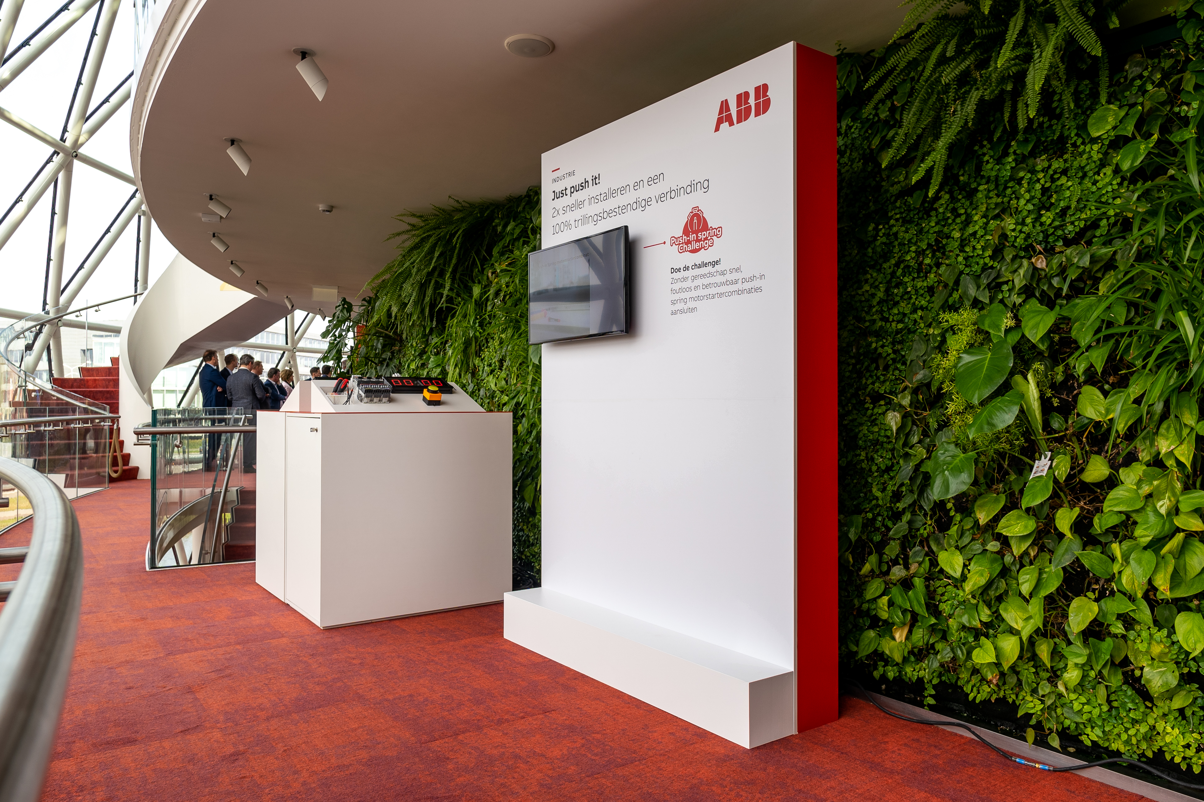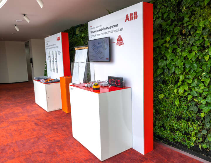 Langs de inspiratieroute zorgde Eldee voor de productie en plaatsing van de info-& productunits, het zijn echte sfeermakers en uitgevoerd in de bekende ABB huisstijl. De Demo-Pods, zijn rondom voorzien van de allernieuwste ABB snufjes, klaar om de bezoeker te laten proberen en ervaren.
