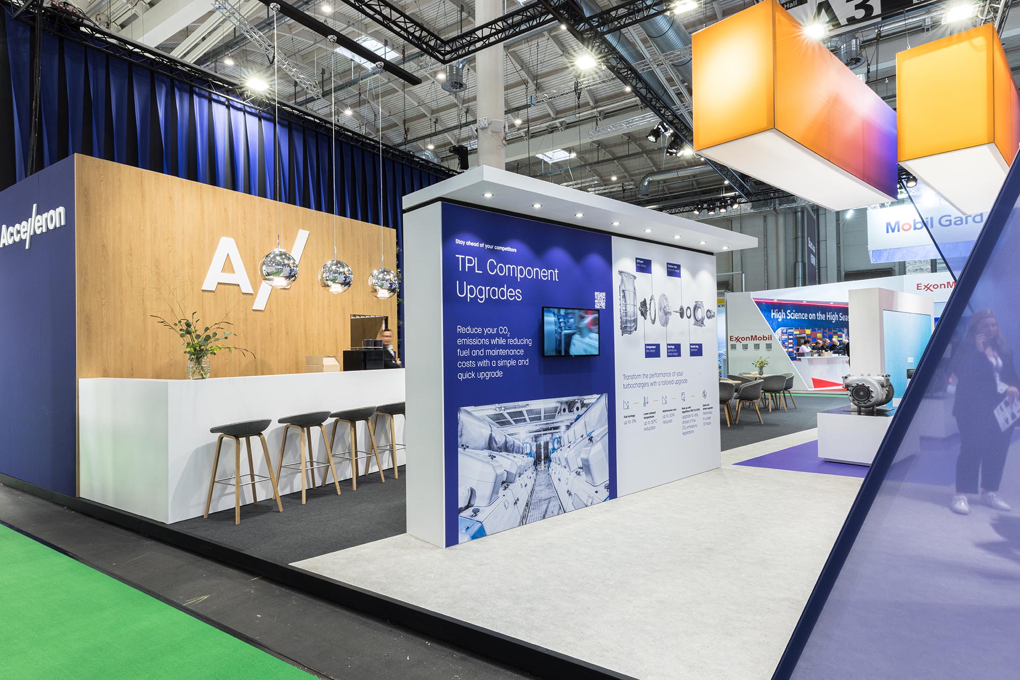 WOW! wat een prachtige presentatie zet Accelleron neer op de beurs SMMfair Hamburg. Hier houden wij van, dit standproject heeft gewoon álles. Een hoog afwerkingsniveau, doordacht ontwerp, strakke lijnen en frisse kleuren.