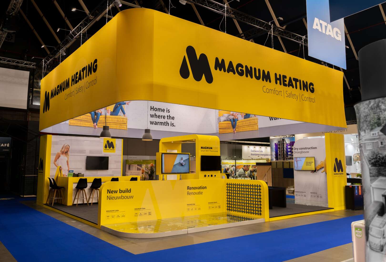 De Magnum huisstijl kleur geel voert de boventoon op deze ruime open eilandstand. Ruimte om klanten te ontvangen en het nieuwe slimme WiFi MAGNUM Remote Control System te tonen is er volop. Opvallen, producten tonen, klanten ontvangen, deze modulaire stand ziet u op meerdere vakbeurzen terug.