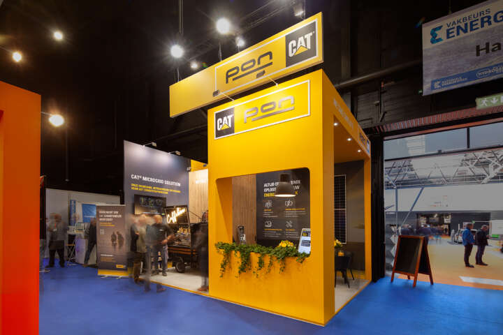 Een toegankelijke stand met een gastvrije warme uitstraling is het resultaat waarmee Pon Power het beurslandschap kleurt.