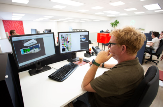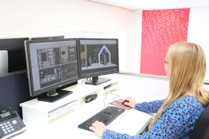 Ons team van ontwerpers zet uw briefing om in een gedetailleerd standontwerp dat naadloos aansluit bij uw merk. We creëren een onderscheidende en opvallende uitstraling, zodat uw stand direct de aandacht trekt en uw merk optimaal tot zijn recht komt. Een essentieel onderdeel van ons ontwerp is dat het bouwbaar, realistisch en volledig realiseerbaar is volgens de bouwrichtlijnen van de beurslocatie.