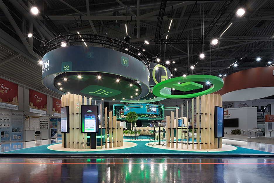 Amidst the bustling halls of the Electronica trade show, Fusion Worldwide stood literally and figuratively “Out in Front of the Competition.” Their booth’s futuristic and purposeful design symbolized their market leadership and technological edge.
